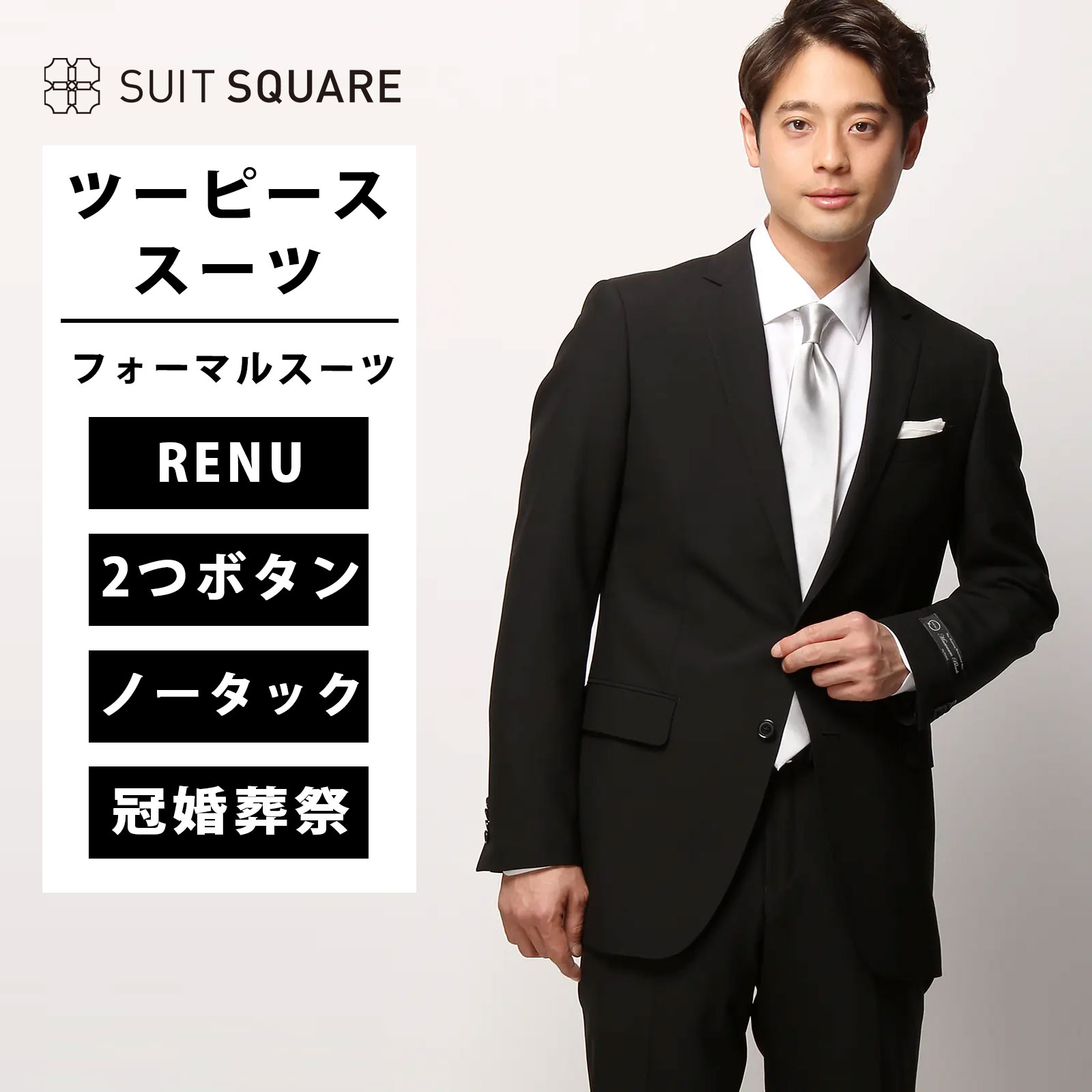 冠婚葬祭にふさわしい、本格的な漆黒のフォーマルスーツ。流行に左右されないすっきりシルエットのため、長くご着用頂けます。慶事から弔事までお使いいただけ、ワードローブに持っておくと安心の一着です。