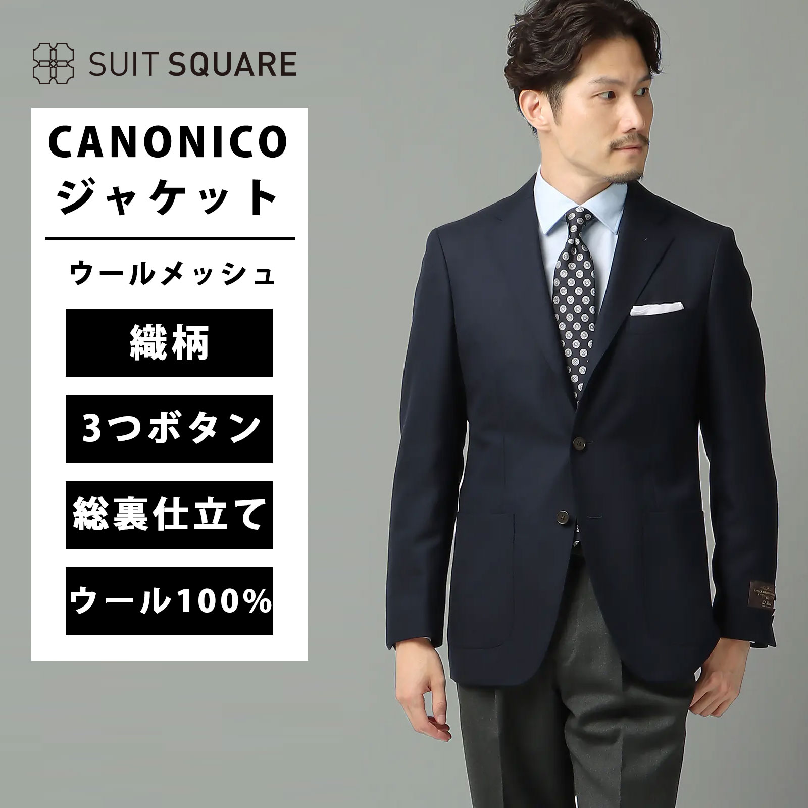 【スーツスクエア】メンズ ジャケット CANONICO ウールメッシュ 織柄 RI05 ネイビー系