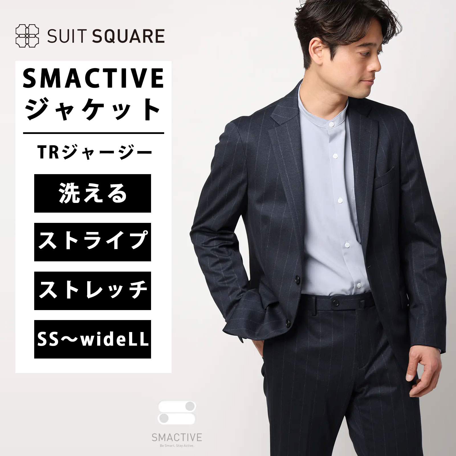 【スーツスクエア】メンズ SMACTIVE ジャケット ウォッシャブル ストレッチ TRジャージー ストライプ SL02 ネイビー系