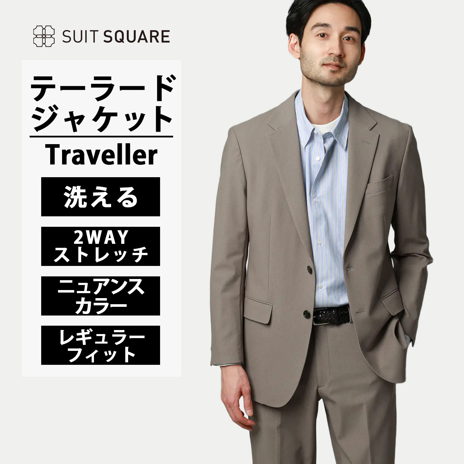【スーツスクエア】テーラードジャケット メンズ レギュラーフィット 春夏 ベージュ 無地 大きいサイズ セットアップ 単品 スーツ 洗える ストレッチ 動きやすい