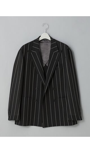 【スーツスクエア】メンズ GOOVI ダブルブレストジャケット シェットランドウールブレンド ワイドストライプ ブラック系