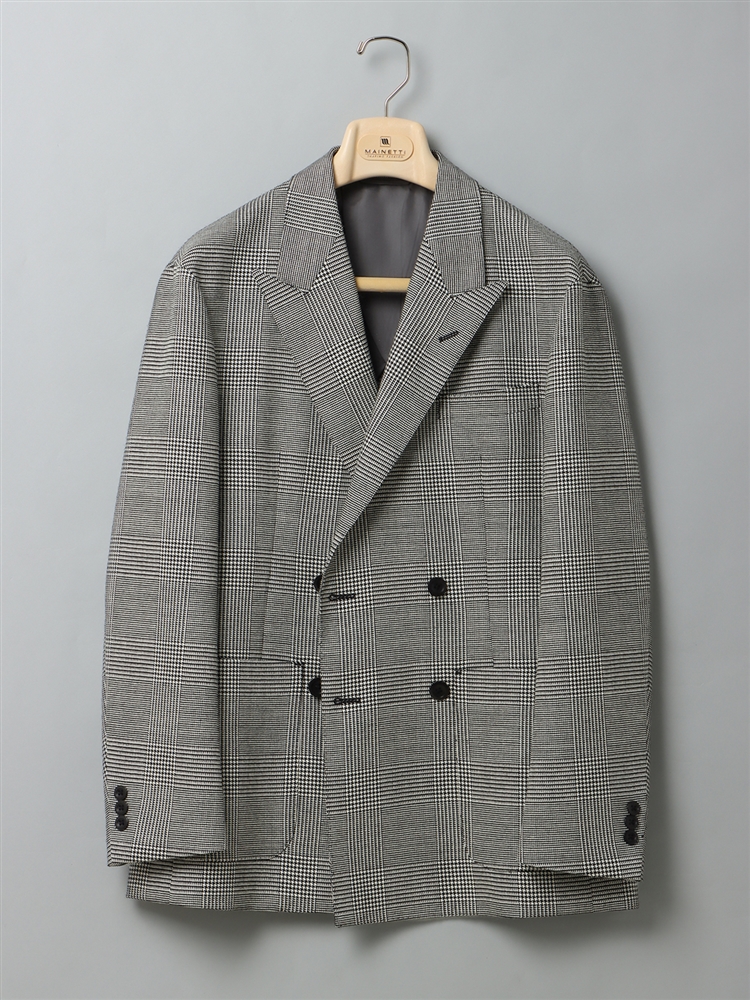 ・英国調のクラシックなグレンプレイドが目を惹くダブルジャケット