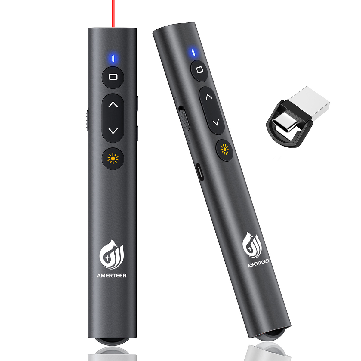 ● 「遠隔コントロール」USB+TypeC受信器端子変換可能で、2.4GHzUSB無線長距離リモート技術を使用し、約15mの範囲でラジコンプレゼンができます。2.4GHzワイヤレス受信機でソフトウェア/ドライバのインストールは要らなく、プラグとプレイ可能です。レーザー指示棒と組合せて強い操作を実現できます。