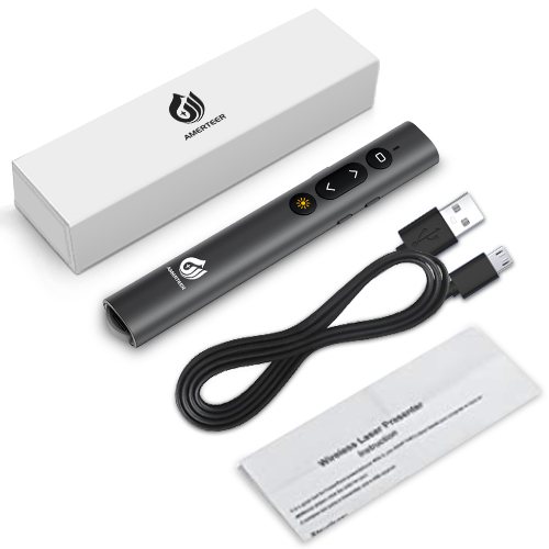 従来の伸縮型指示棒は距離が短い、遠隔にスライド操作の自動化操作もできなくて骨が折れる感じ、ワイヤレスプレゼンターを組み合わせしたら講演距離が遠くなれ、大きい教室や会議室の発表でも楽々になれます。-----