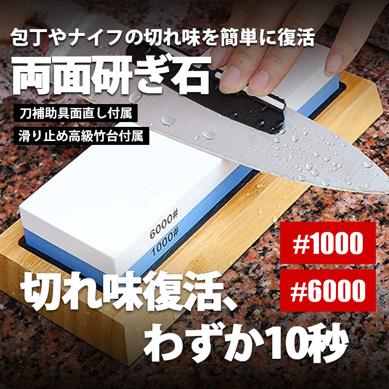 砥石 包丁研ぎ器 砥石セット 砥石台 包丁 両面砥石 #1000 #6000 砥石 刀補助具 竹台座 ゴム台座 中砥石 仕上砥石 家庭用 料理人用
