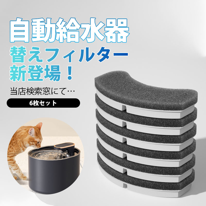 猫 水飲み器 自動給水器 フィルター 6枚セット 大容量 3L ペット用 30dB静音 洗いやすい 取付簡単 活性炭フィルター 替えフィルター
