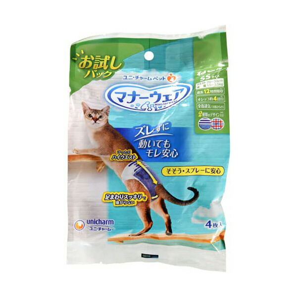 (3個セット) ユニ・チャーム マナーウェア ねこ用 SSサイズ お試しパック 4枚