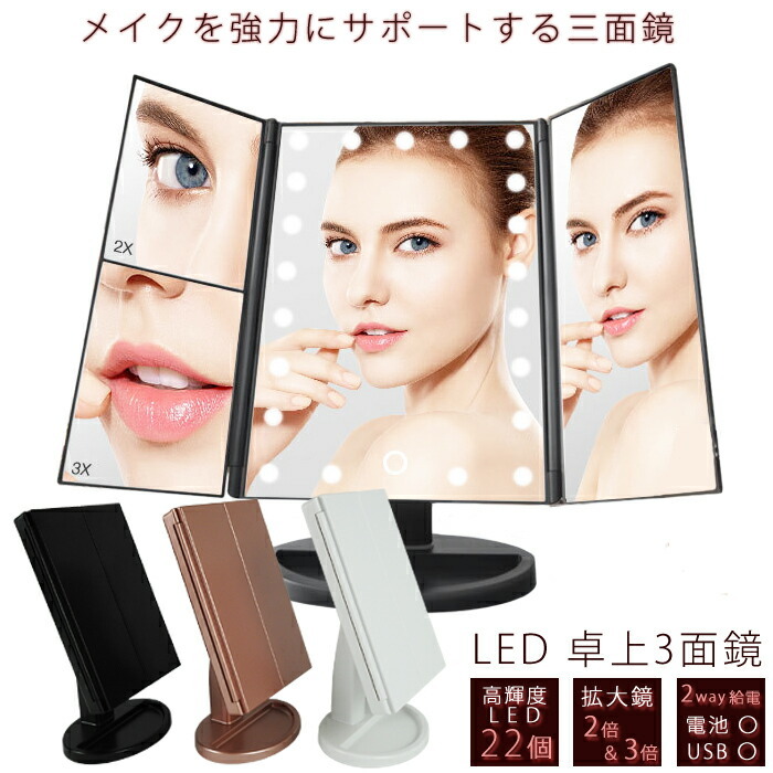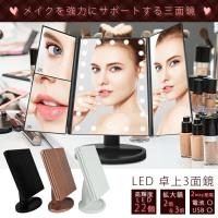 LED 卓上ミラー 三面鏡 女優ミラー 折り畳み式 明るさ調整可能 角度調整 LED ミラー LEDバー 3面鏡 ライト 化粧鏡 メイクミラー ブライトミラー スタンドミラー