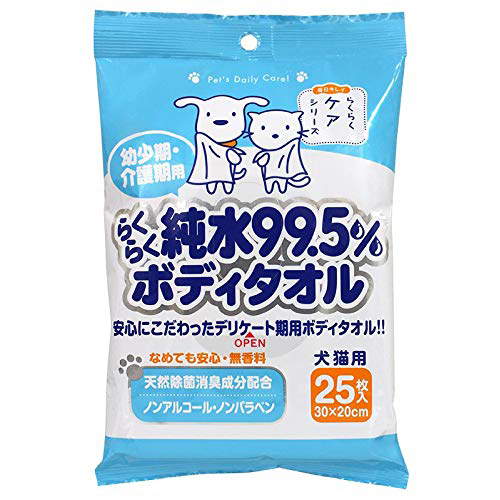 (2個セット) スーパーキャット 毎日キレイ らくらく純水99.5%ボディタオル 25枚入 犬・猫 大人 ワイプ Super Cat シャンプータオル