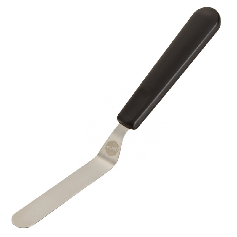 'Angled Spatula-Black 23cmColour: BlackSize: 23cm23cm angled spatulaFeatures a 11cm bladeContoured handle with finger pad brings comfort to decorate your treatsFlexible stainless steel blade is perfect thickness for gliding over icingSpatula gives you more control when icing your cake世界中に多くのファンを持つ、アメリカ WILTON (ウィルトン) 社 の華やかで楽しい製菓器具・グッズです。パーティやお祝い・記念日を華やかにデコレーションするためのとってもキュートで個性的なグッズがいっぱいです!