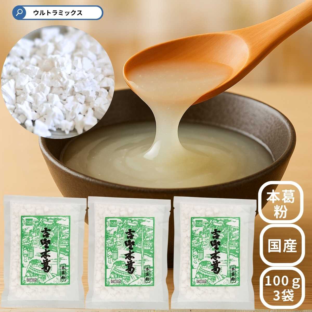 吉野本葛(本葛粉)健康フーズ 葛粉 100g ×3 袋 300g でん粉 国産 本葛100% 葛湯 薬膳 本葛粉 本葛 本くず粉 葛粉 くず粉 葛 粉