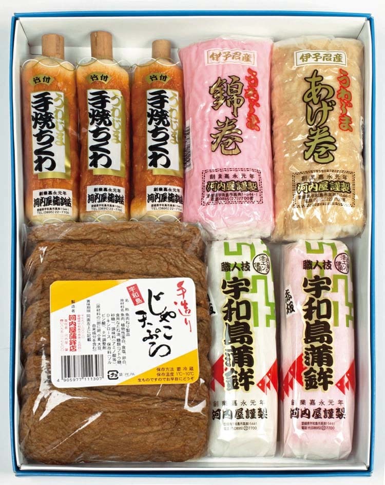 ■「つばき」宇和島かまぼこ・手焼きちくわ・あげ巻・錦巻・手造りじゃこてん 詰め合わせ 河内屋蒲鉾 愛媛県宇和島市 年【冷蔵】