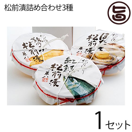 3種の松前漬を木樽に入れ、詰め合わせました。贈答用に最適なセットです。