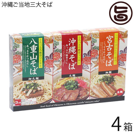 麺の形や太さ、出汁、ソーキor三枚肉といった、それぞれの特徴を楽しめるお得なご当地三大そばセットをお楽しみください。