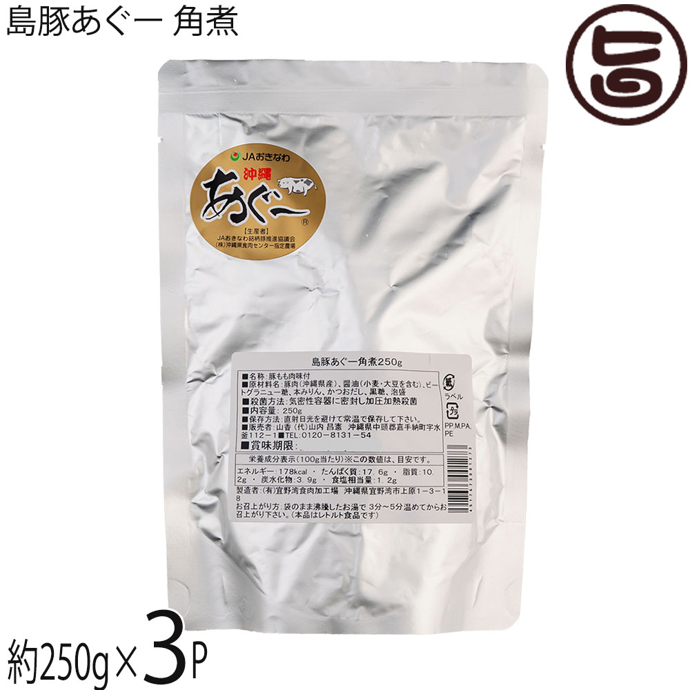 豚肉(沖縄県産)、醤油、ビートグラニュー糖、本みりん、かつおだし、黒糖、泡盛 一部に小麦、大豆を含む