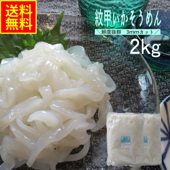 いかそうめん 紋甲いか 2kg 業務用 送料無料 冷凍 刺身用 イカ刺し 海鮮珍味 おつまみ 酒の肴