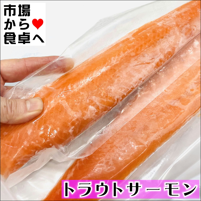 トラウトサーモン ロイン 3kg 業務用 【血合い無しサーモン刺身用】 お刺身・カルパッチョ等でお召し上がりください【冷凍便】