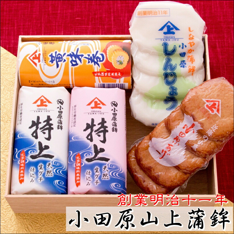 かまぼこギフト華G-5 (特上)【創業明治十一年・小田原山上蒲鉾】特上蒲鉾紅白各1本・姫黄味巻 1本・小田原あげ 1パック・新上 1パック【冷蔵便】