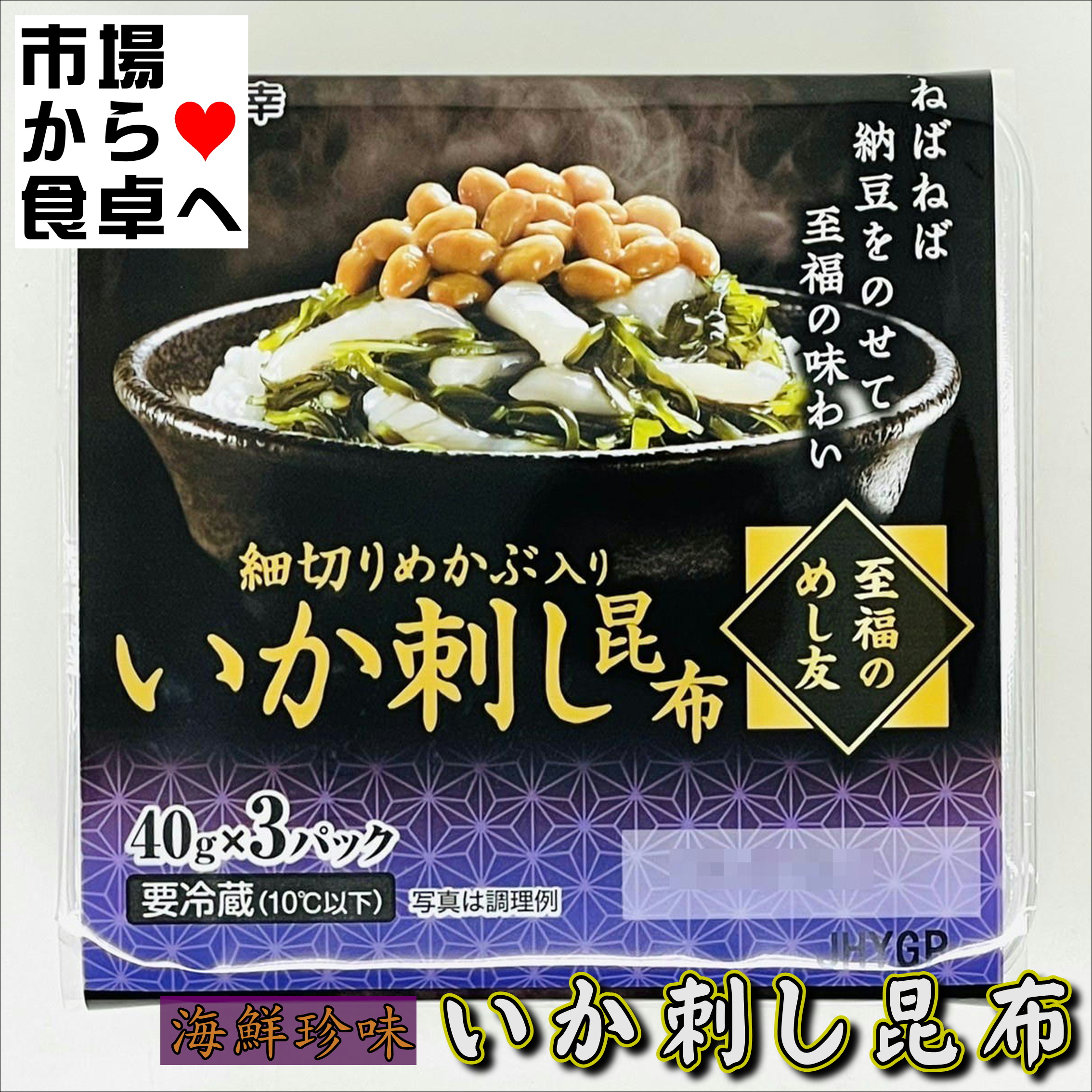 いか刺し昆布 6パック(1パック3個)【至福のめし友】するめいかと昆布、めかぶ入りのご飯によく合うまろやかな醤油味の一品。【冷蔵便】