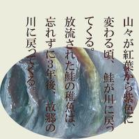 | 数年掛けて遡上した限定鮭のスモーク1本物です。(トバとも呼ばれている。)新潟県能生川に稚魚放流し、数年掛けて遡上戻りを環境と共に守る漁業活動と地元水産高校の生徒さんたちの加工技術が一体となって出来上がった逸品です。 絶品ですが、遡上数量が限られたいた逸品です。地元では美味し幻の絶品がようやく遡上確保できて、全国お届け出来るようになりました。しかし、まだ売れ切れ”ごめん”の限定は続きます。通常のトバと違い、まるごと1匹サイズをスモークで肉厚の脂の乗りの美味しさは、お酒の共にはたまらない珍味です。 お酒の飲みすぎに御注意して味わいください。 |