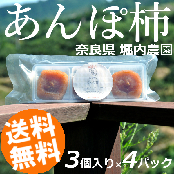 干し柿 3個×4パック 無添加 堀内農園 奈良県 あんぽ柿 国産 送料無料 おうち時間 お取り寄せ