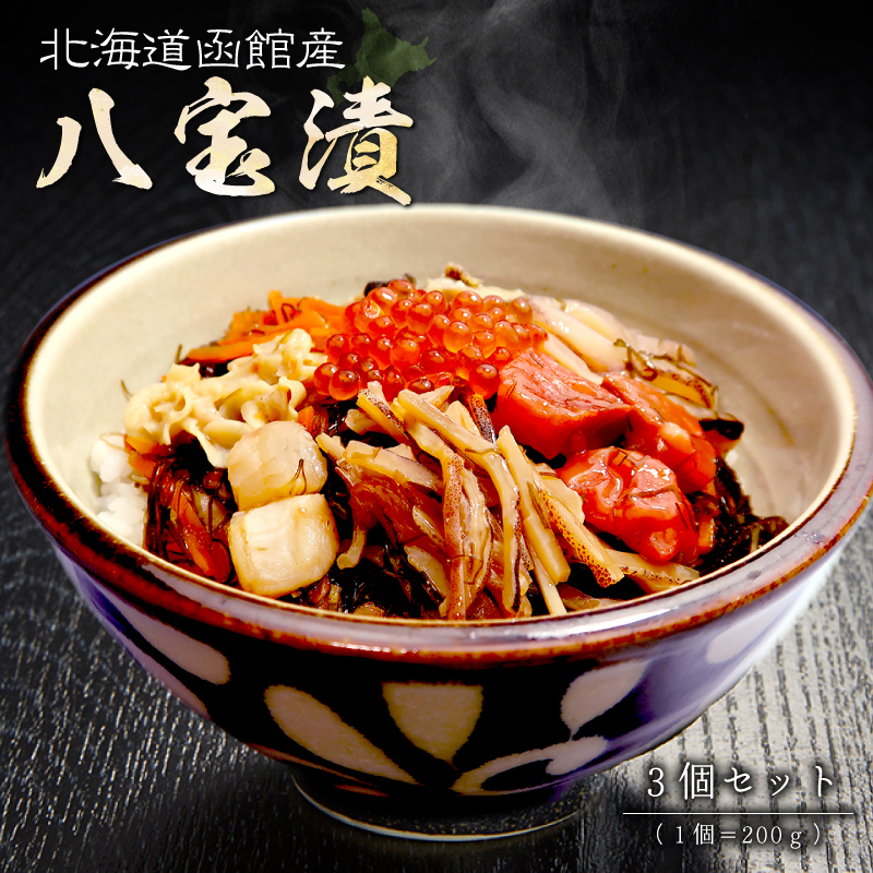 北海道函館産 八宝漬200g×3個セット 送料無料 ギフト ご贈答 海鮮丼 ご飯のお供 お酒のあて 秋鮭 マスの卵 ホタテ貝のヒモ ツブ貝 スルメイカ 昆布