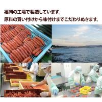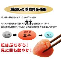 | 原材料 | すけとうだらの卵巣(ロシア又はアメリカ)、発酵調味料、食塩、醤油、唐辛子、かつお風味調味料、調味料(アミノ酸等)、甘味料(ソルビット)、酸化防止剤(ビタミンC)、ナイアシン、酵素、発色剤(亜硝酸Na)、(原材料の一部に小麦、大豆を含む) |