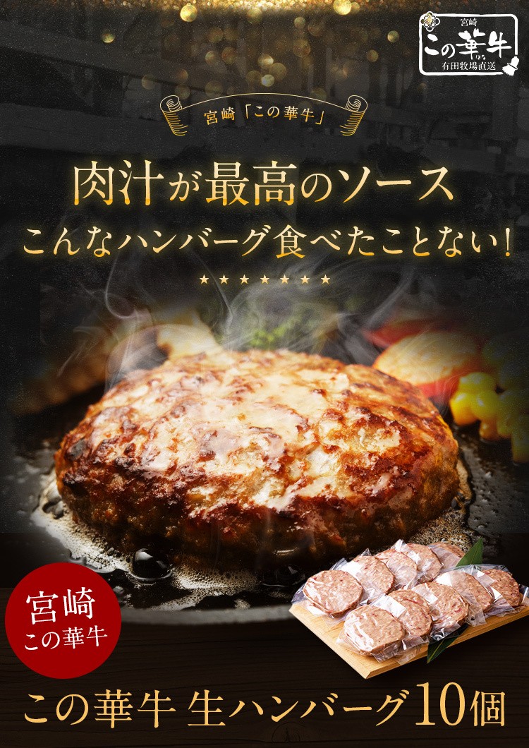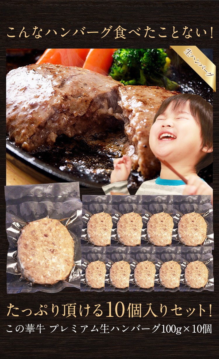 肉 牛肉 黒毛和牛 ハンバーグ 1kg (100g×10個セット) 冷凍 この華牛 国産 ギフト 送料無 お取り寄せグルメ 高級 旨さ 訳あり 食品 うま味 爆買 [産直]