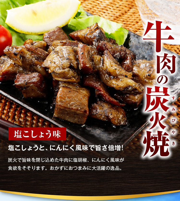 <牛肉の炭火焼(塩胡椒)>