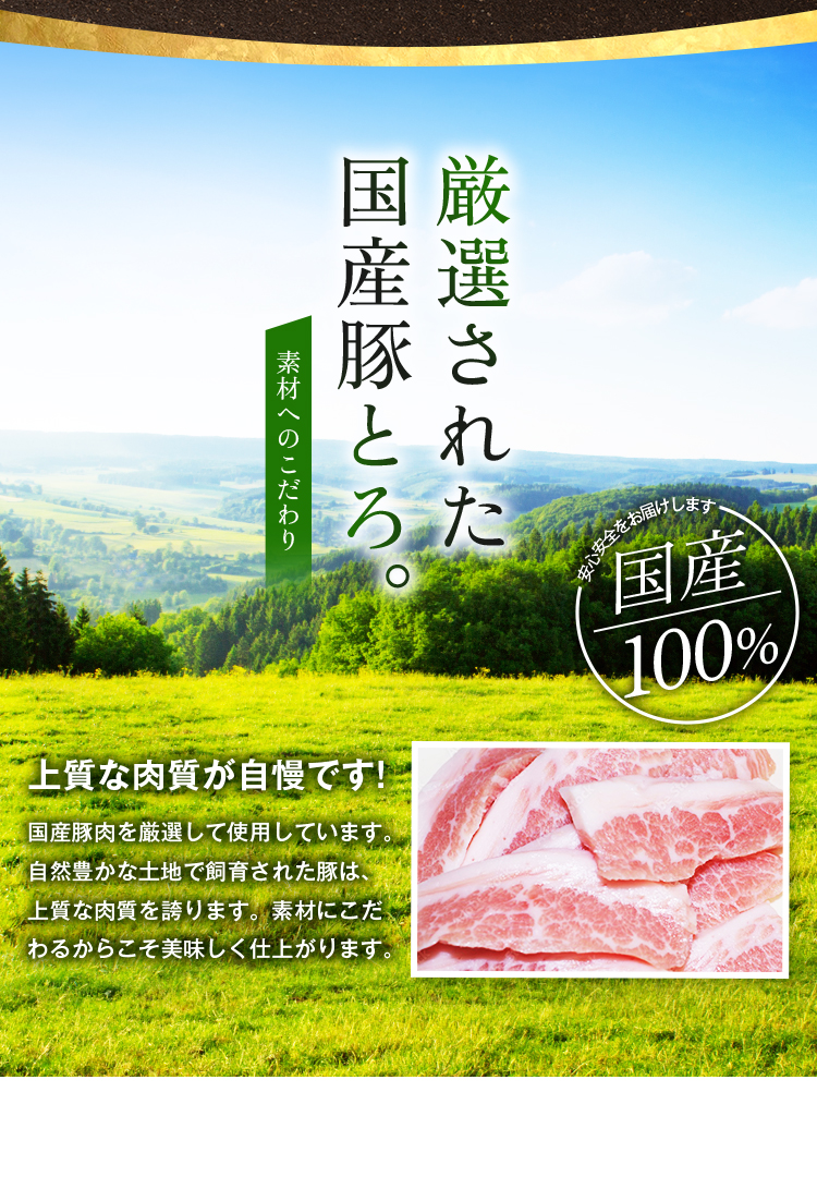 ■原材料名:豚肉(国産)、食塩、ガーリックパウダー、でん粉、香辛料、ごま油、鶏脂/調味料(アミノ酸)、増粘剤(グァーガム)、(一部にごま・鶏肉・豚肉を含む)