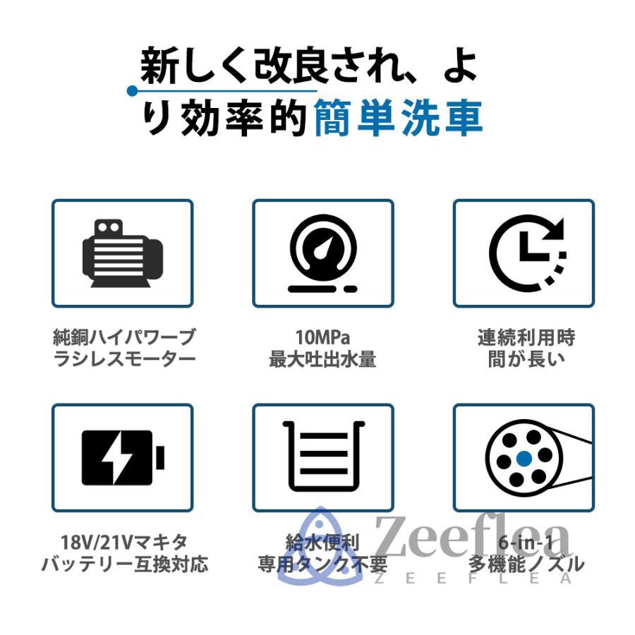 新しくアップグレードされたブラシレス高性能純銅モーターを搭載しており、強力な安定性と耐久性と強力なパワーの効率を向上されます。それに過電流保護、過電圧保護、過熱保護、充放電保護、アップグレードされた高効率プランジャーブースターポンプを取り付けています、駆動力は450ワットで、強力な圧力と安定して稼働できて、市販品より随分長持ち、頑固な汚れでも綺麗に洗えます。