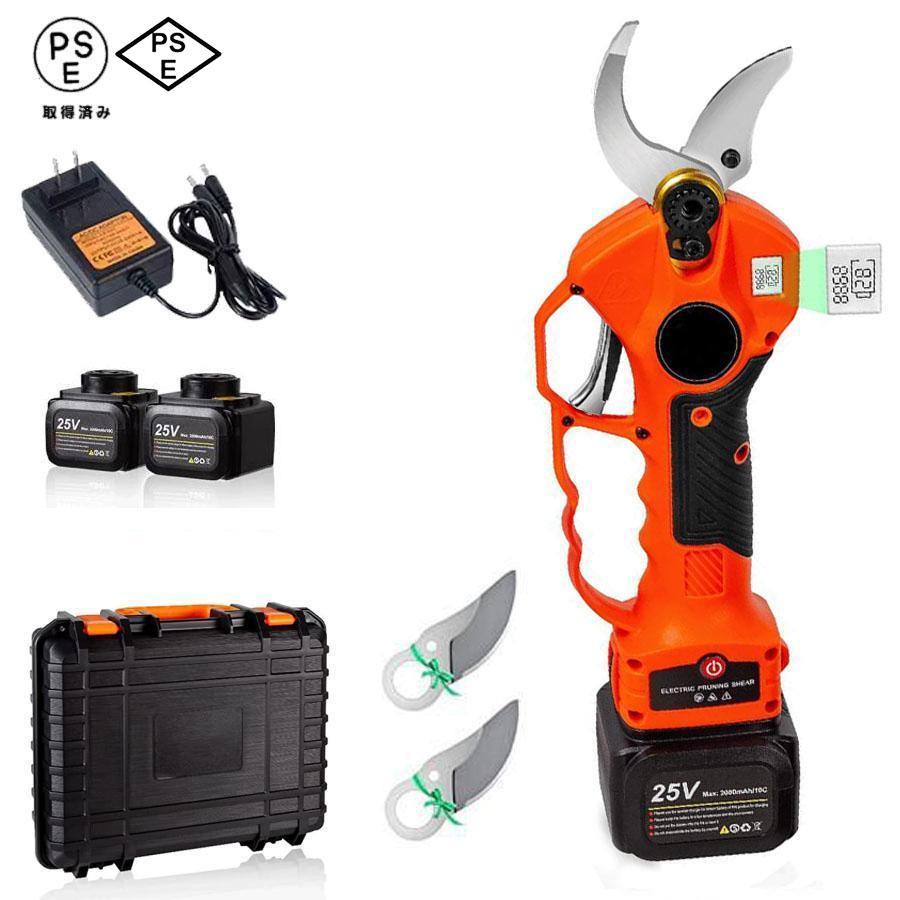【2025最新】充電式剪定ばさみ 25Vコードレス、電動剪定バサミ ブラシレスモーター搭載 プロ、電動枝切り鋏 、切断回数と残量表示 切断径40mm