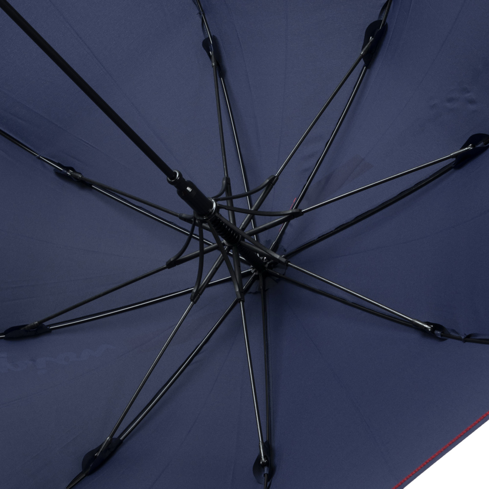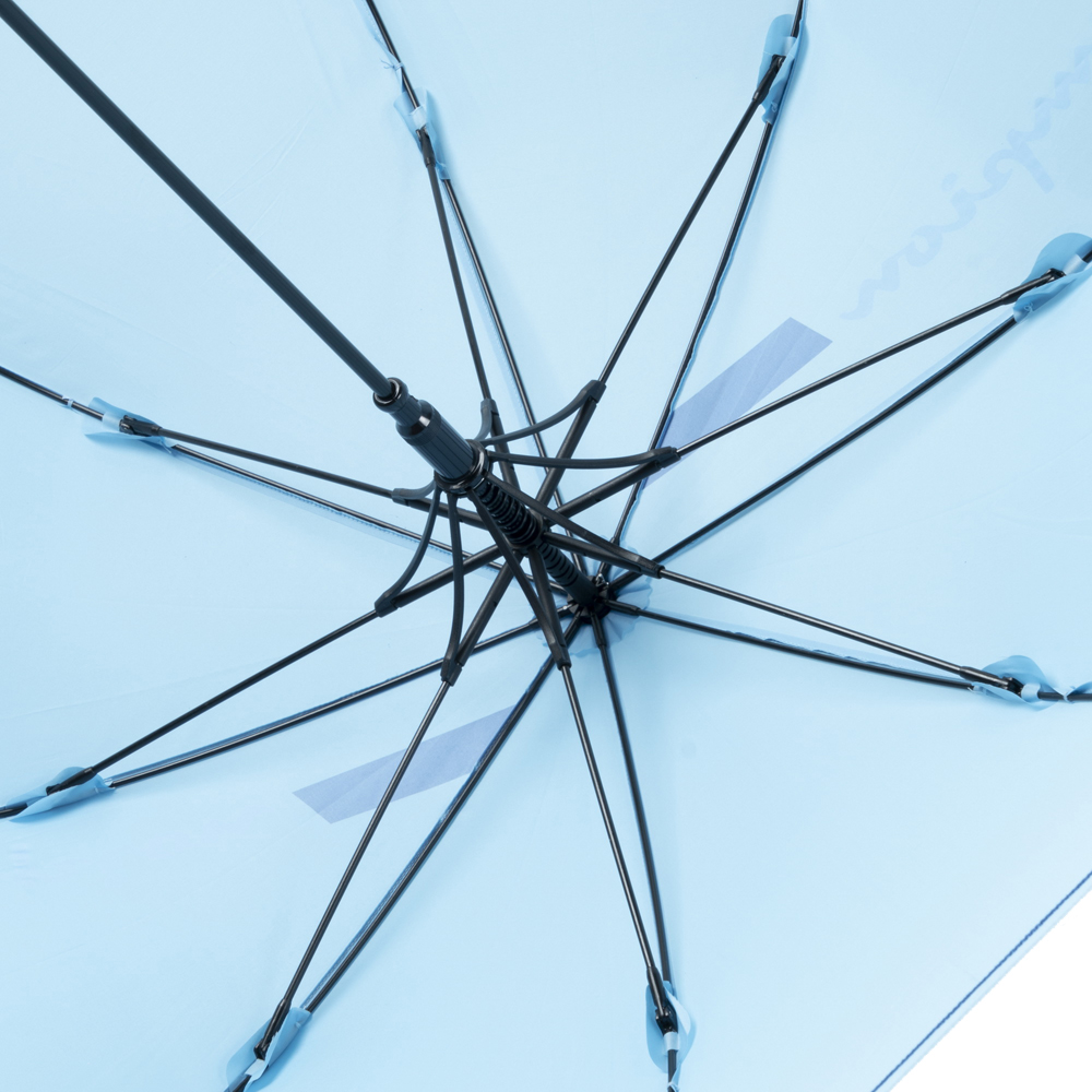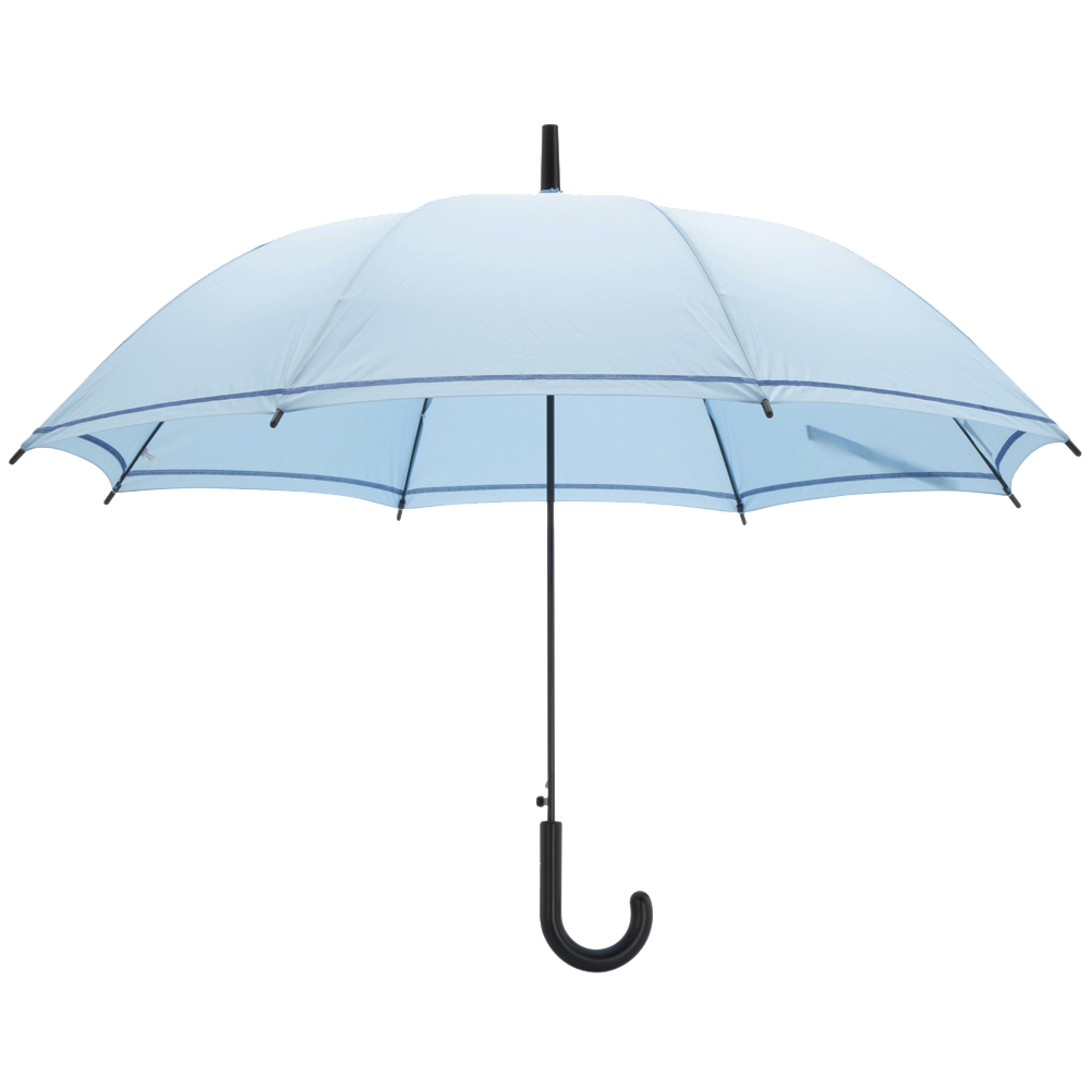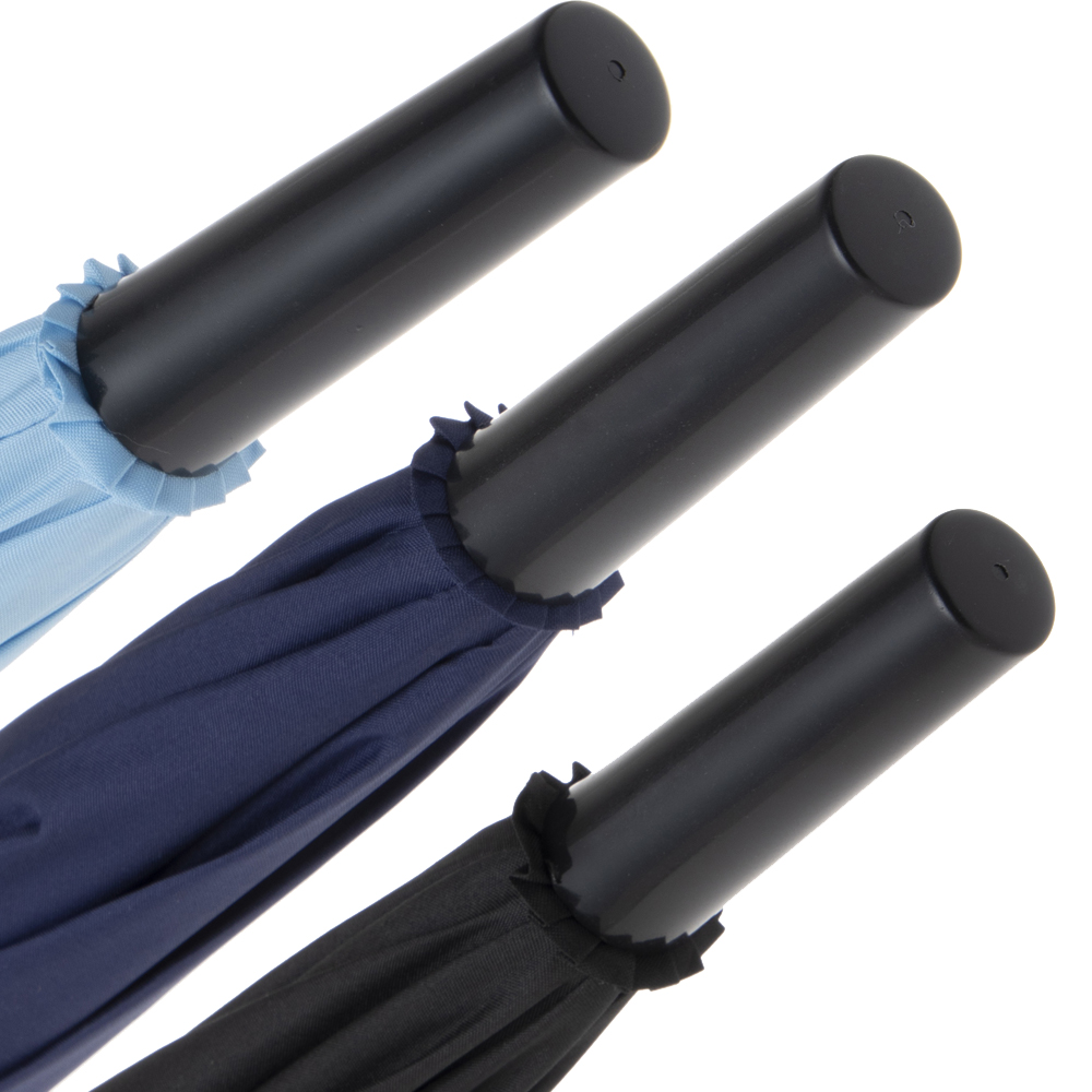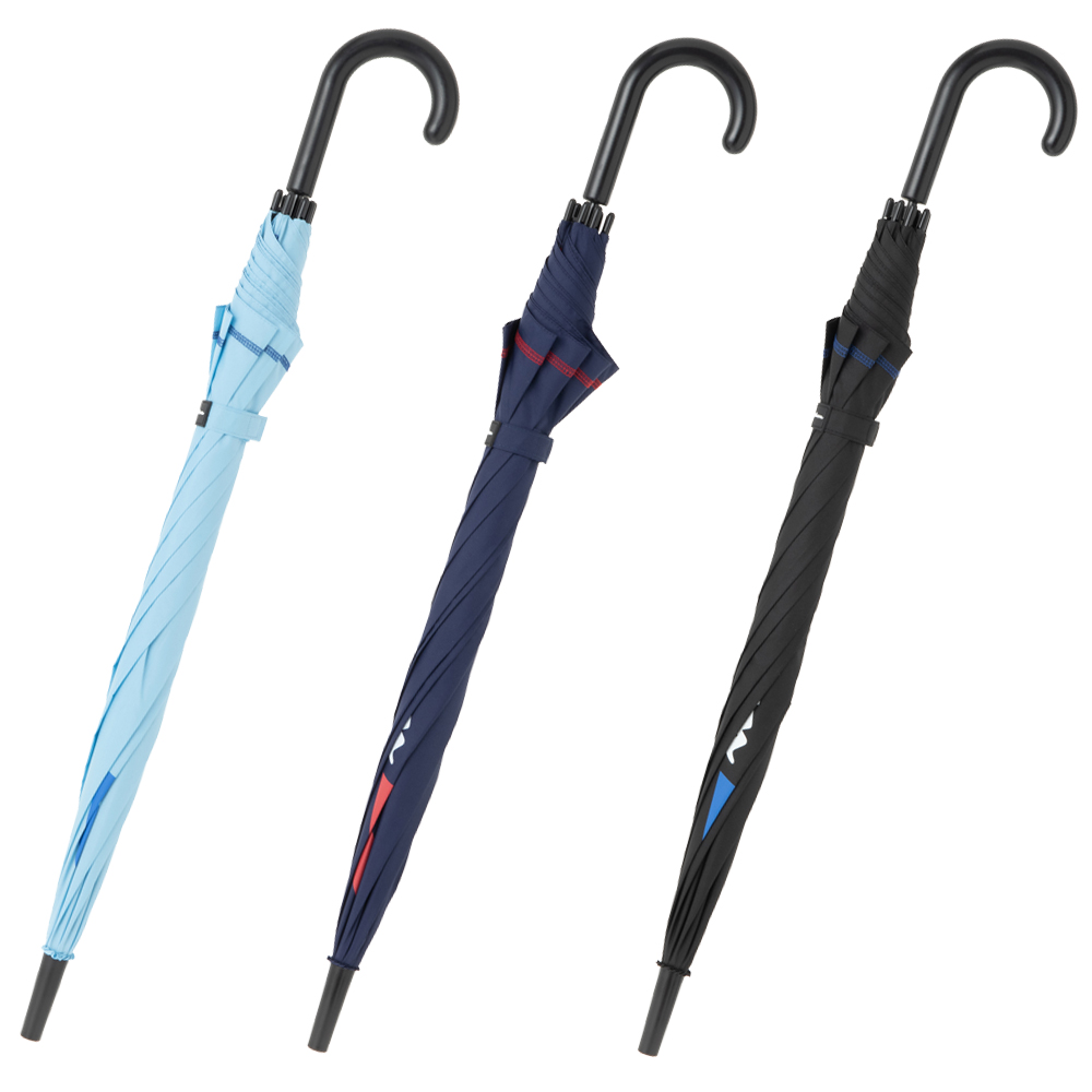 小学校高学年〜中学生向けのジャンプ傘です。耐風タイプですので、強風下でお猪口型になって風を逃がしてくれます。親骨と受骨に折れにくいグラスファイバーを使用しております。無地生地にロゴプリントが施してあります。