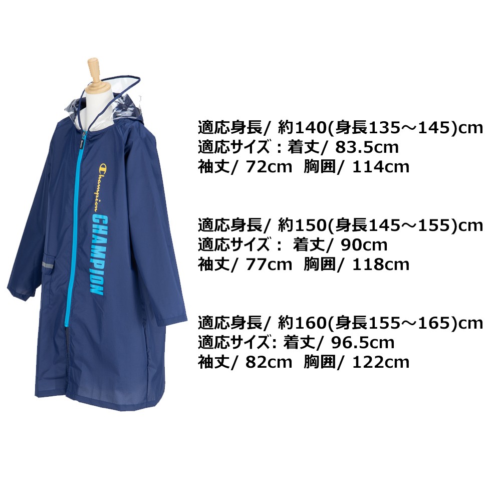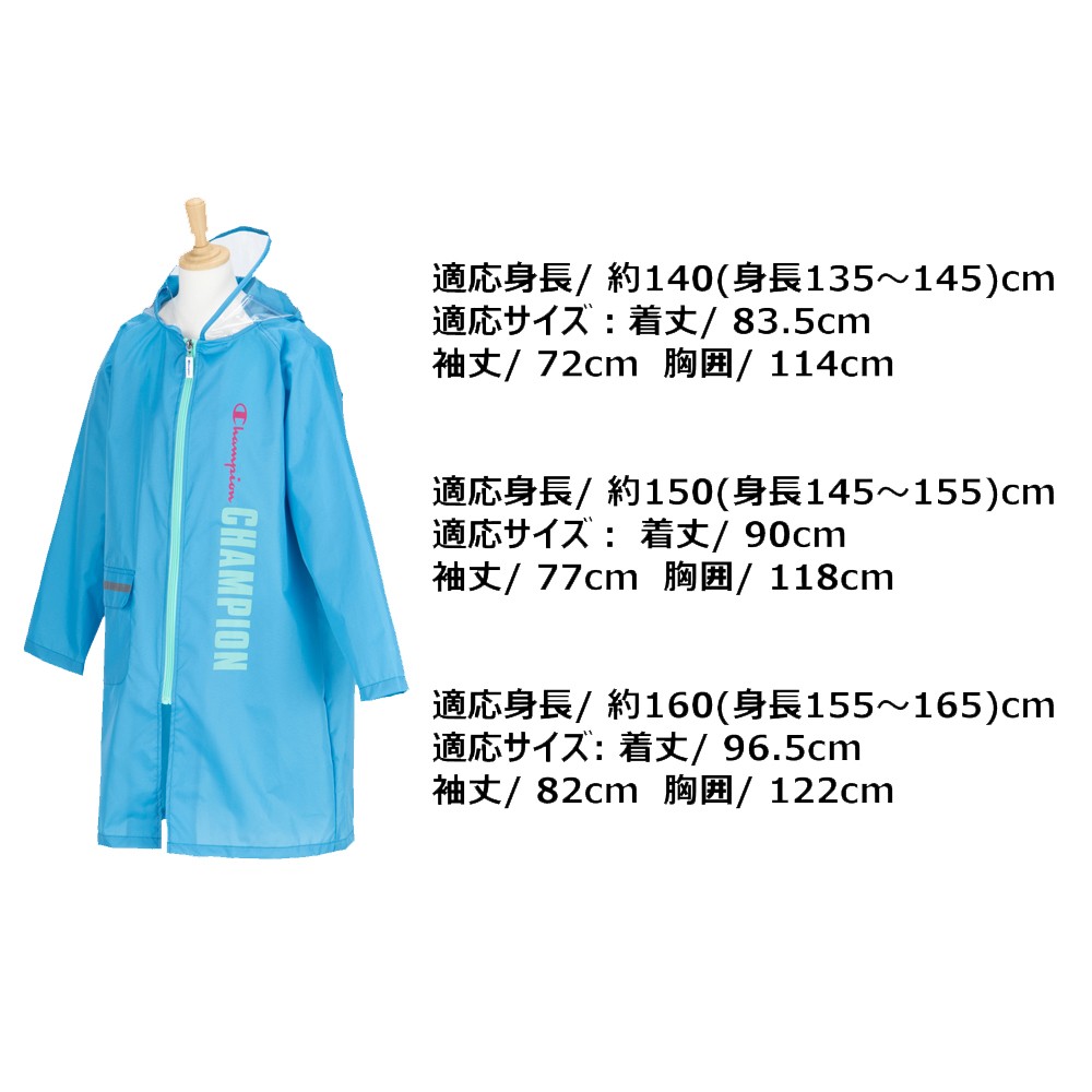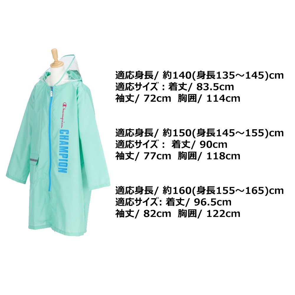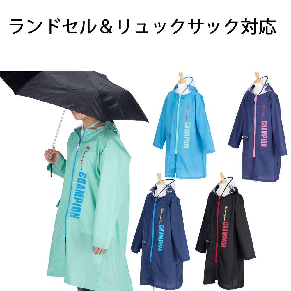 Champion チャンピオン 子供 レインコート 140 150 160 軽量 携帯 ランドセル対応 校外学習 遠足 修学旅行 梅雨 台風 通学 合羽