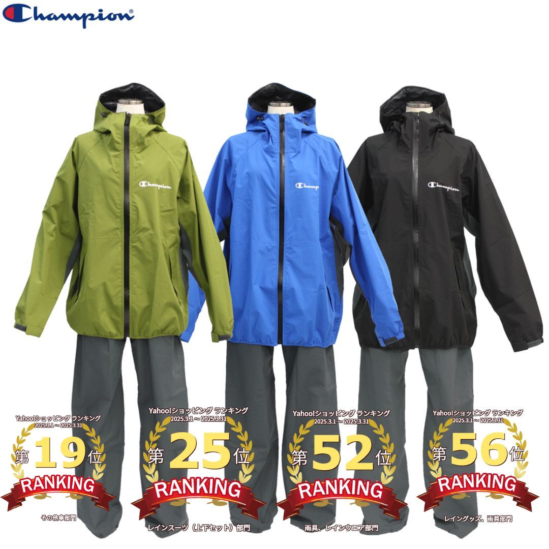 Champion チャンピオン レインスーツ メンズ レディース 男女兼用 ストレッチ 透湿 防水 上下セット M〜3L 耐水圧10000mm 高機能 梅雨 台風対策 豪雨