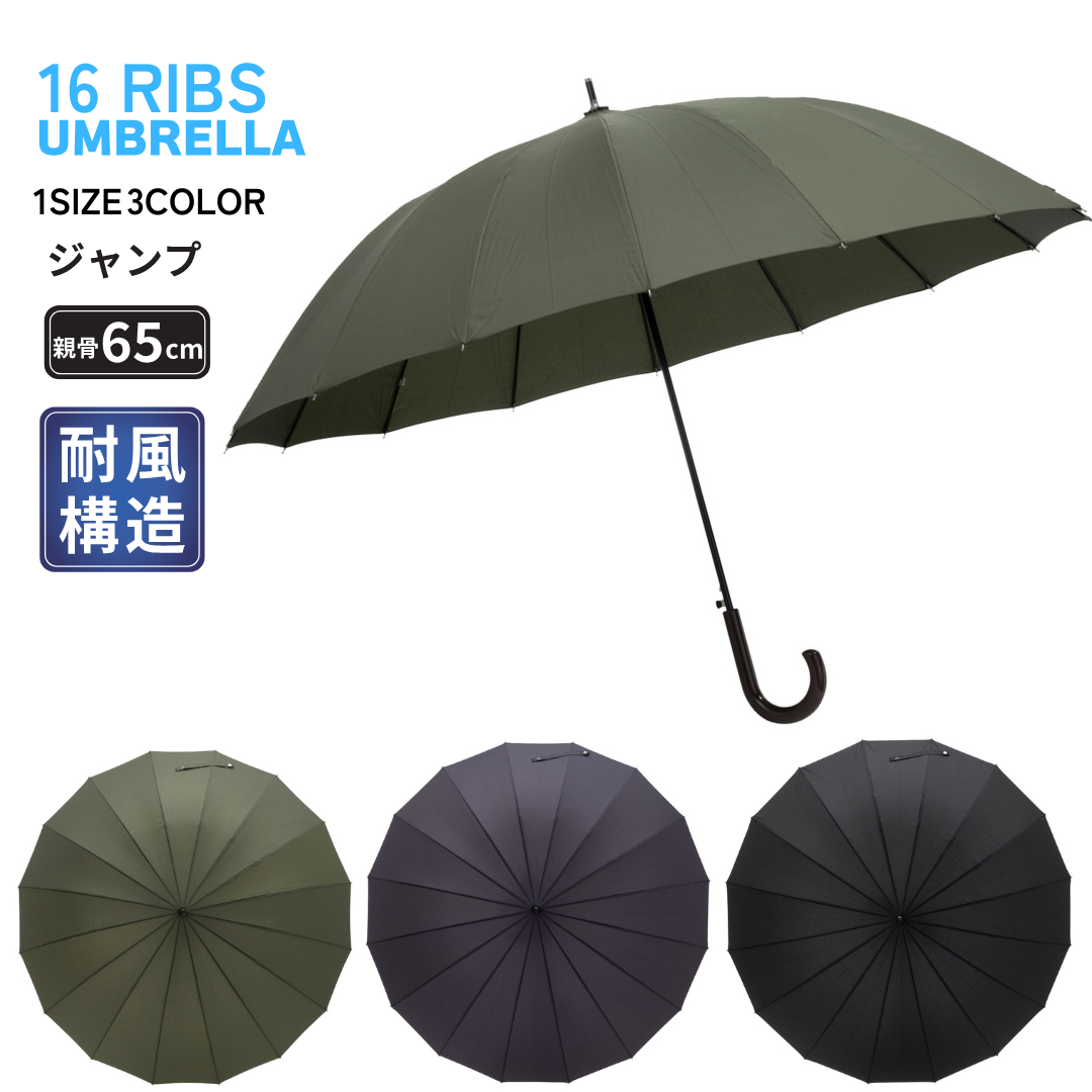 ? 強風に強い16本骨!紳士用ジャンプ傘