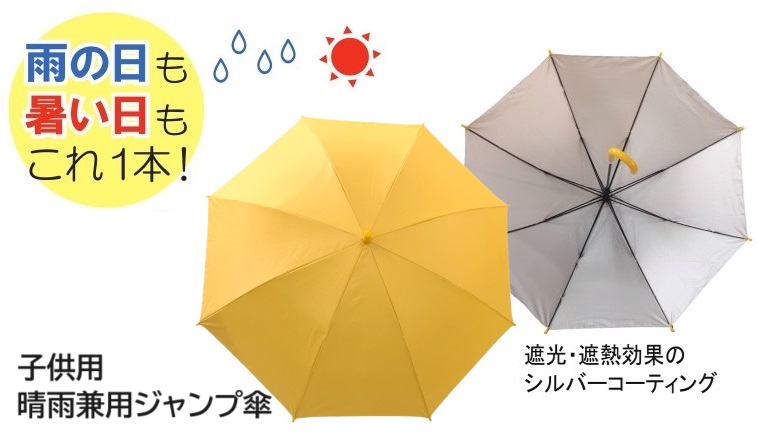 学童日傘ジャンプ 晴雨兼用傘 風に強いグラスファイバー UVカットシルバーコーティング加工