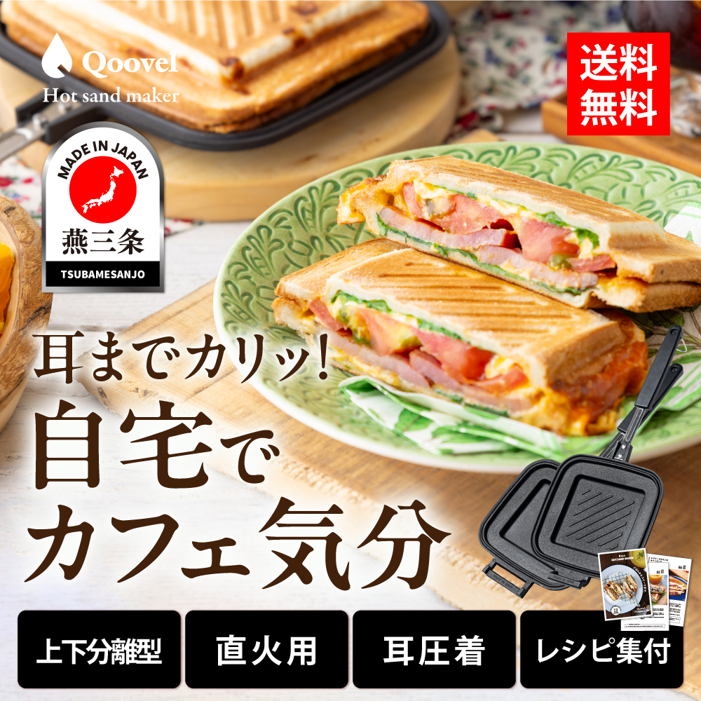 【日本製・燕三条】直火ホットサンドメーカー Qoovel|耳圧着式・上下分離OK・ガス火対応・レシピ付・送料無料