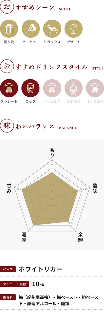 [原材料]梅(紀州南高梅)・梅ペースト・桃ペースト・醸造アルコール・糖類