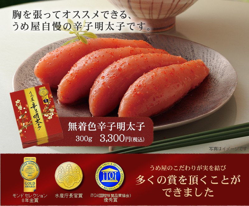 うめ屋 明太子 無着色 一本物 300g 【モンドセレクション18年金賞受賞】辛子明太子 福岡直送 博多 めんたいこ