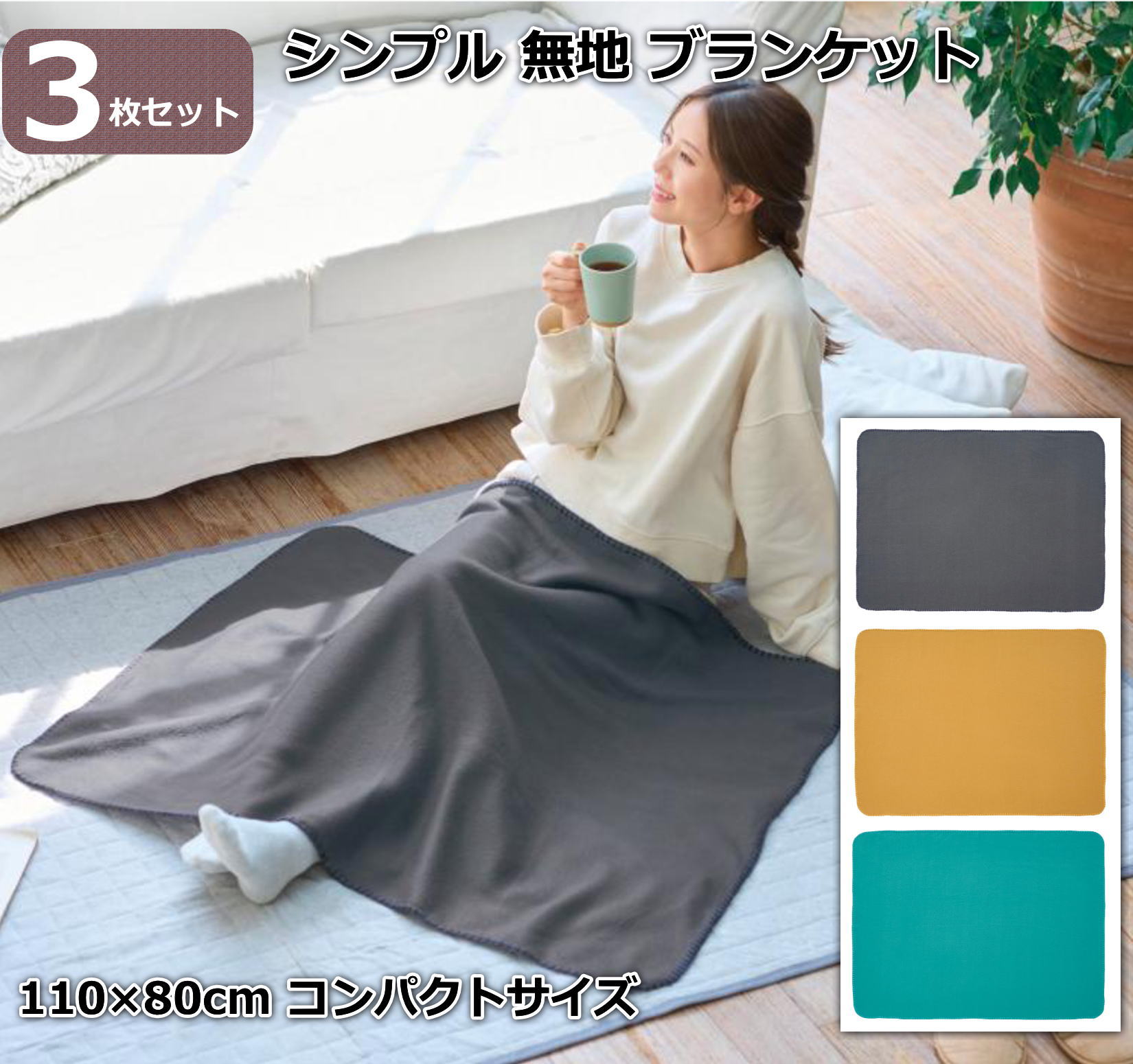 シンプルな無地のブランケット3枚セット。シンプルなデザインなので、レストラン ホテル カフェ 漫画喫茶乗り物 劇場等でのお客様に貸し出す備品としてもおすすめ。