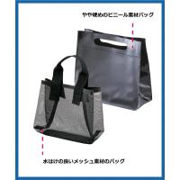水はけのよいメッシュ地のバッグ+ビニール素材の硬めのバッグがセット。メッシュ単体使用、ビニールバッグ単体使用、メッシュバッグをビニールバッグに入れての使用と3通りの使用方法がございます
