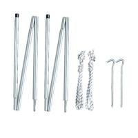 アメニティドームを有効に活用するためのアイテムとして、フロントドアパネルを跳ね上げて快適空間を広げるのに必要なアップライトポール150cm×2本、自在付ロープ2.5m×2本、ジュラピンペグ17cm×2本にポールケース、ペグケースをセットにしました。