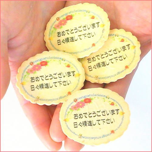 お祝いギフト-おめでとうせんべい小判個包装 プリント塩バター煎餅1枚単品 はげます 奮起 がんばる 合格 卒業 卒団 卒園 記念 お配り 名入れ メッセージ