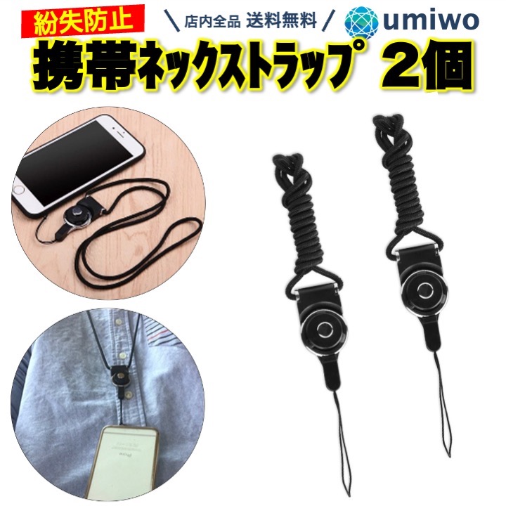 落下防止機能付きの携帯ネックストラップ 2個セット