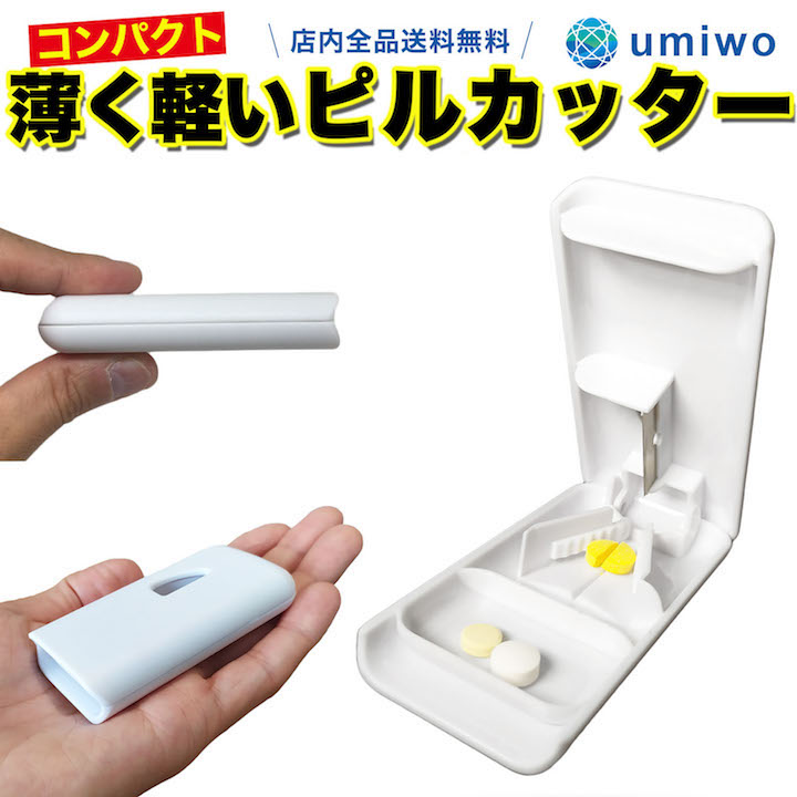ピルカッター コンパクトな最小サイズ ピルケースとして持ち運びも 丈夫なABS素材なので長持ち タブレットや錠剤などの薬をカットできる錠剤カッター
