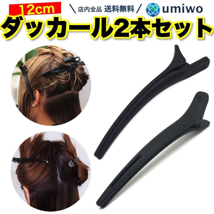 ダッカール 2本セット 黒 大きめ12cm シンプル 美容業界 ヘアクリップ ヘアアレンジ 巻き髪 ブロッキング 髪留め くちばしクリップ セルフ プロ ダックカール