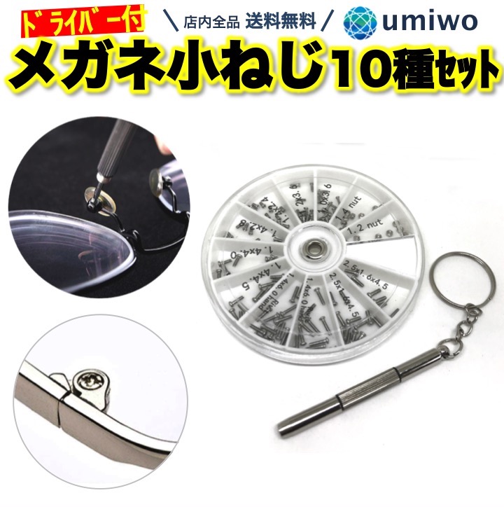メガネ用 ネジ 10種類 120個 セット ミニドライバー付き 小型ねじ 修理 補修 パーツ ナット 時計 サングラス キー 工具 小ネジ スクリュー