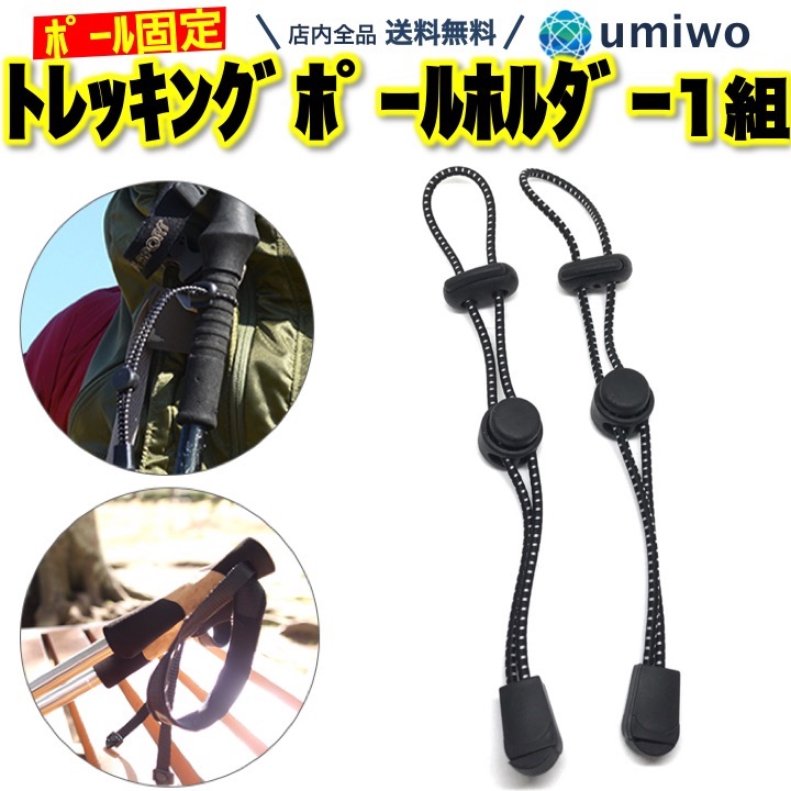 トレッキングポール ホルダー 1組(2個)セット ストック 固定 ゴム紐 リュック ザック 収納 登山 キャンプ アウトドア 固定紐 ポールホルダー バックパック