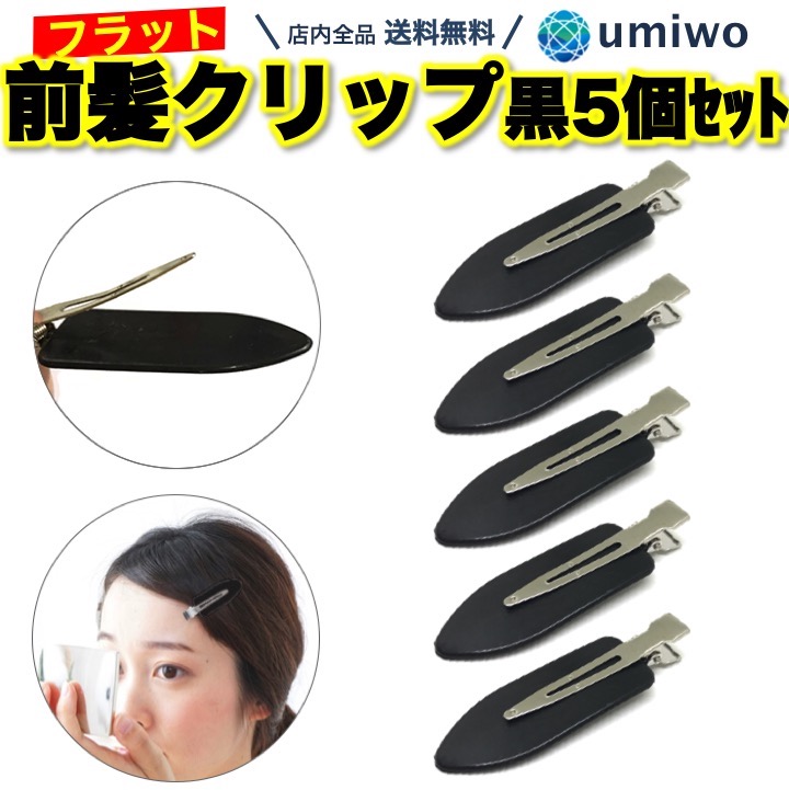 商品名:前髪クリップ 黒 5個セット 跡がつかない フラット形 スタイリング 髪留め 女優 ヘアクリップ ヘアピン 洗顔 メイク 跡クセ 留め跡 前髪 目立たない デザイン